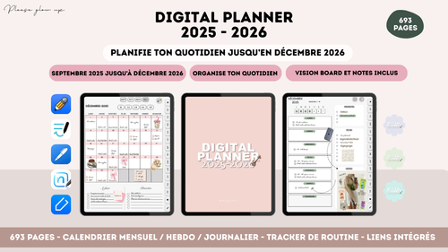 Que ce soit pour ta vie personnelle, ton business ou tes réseaux sociaux, chaque planner est pensé pour être simple, intuitif et personnalisable sur tablette, afin de s'adapter à ton rythme et ta réalité.
